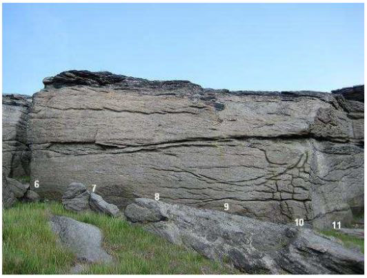 9. Flake. Climb the flake on theright side of the slab. 4.