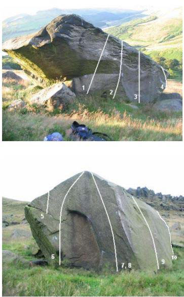 Perhaps the best boulder at Wimberry, some classic harder problems with a smattering of good mid grade problems.